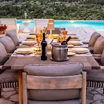 Villa dispose d'une cuisine équipée, ainsi que d'un coin repas extérieur pour cuisiner et dîner. Vous pouvez également utiliser une bouilloire électrique, un réfrigérateur et de la vaisselle pour préparer votre propre repas. Cette villa Kronos Estate Lefkada - 5 star luxury dispose d'une piscine, ainsi que d'un centre de fitness, offrant de nombreuses options de détente et d'exercice.